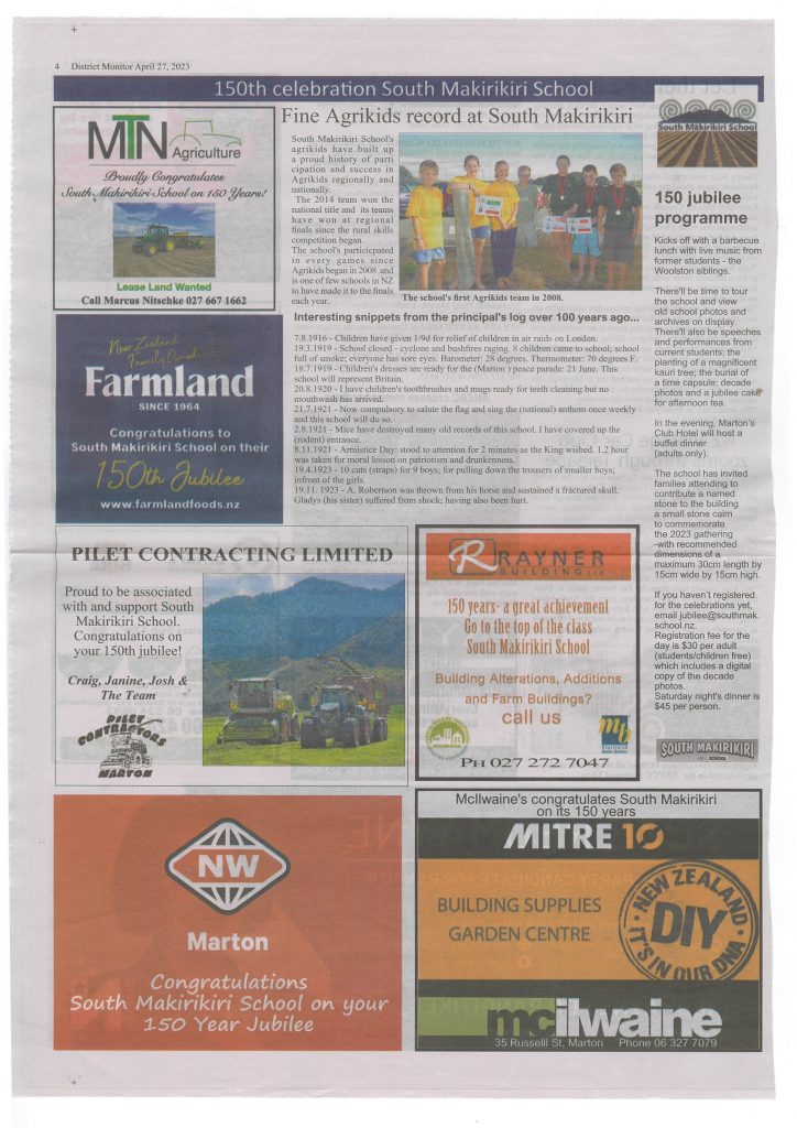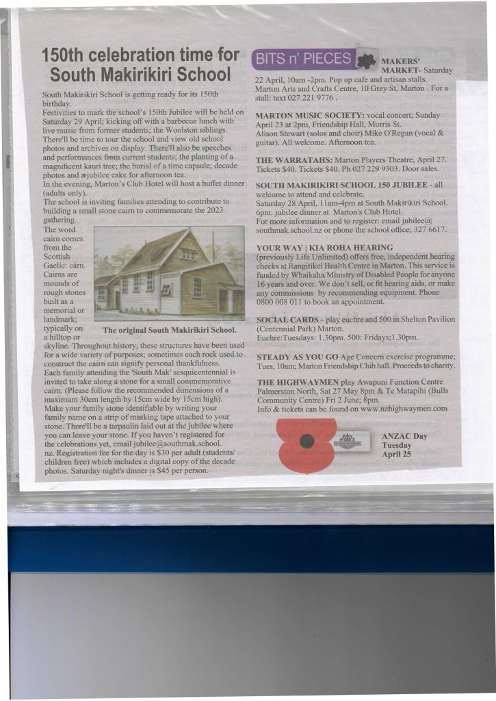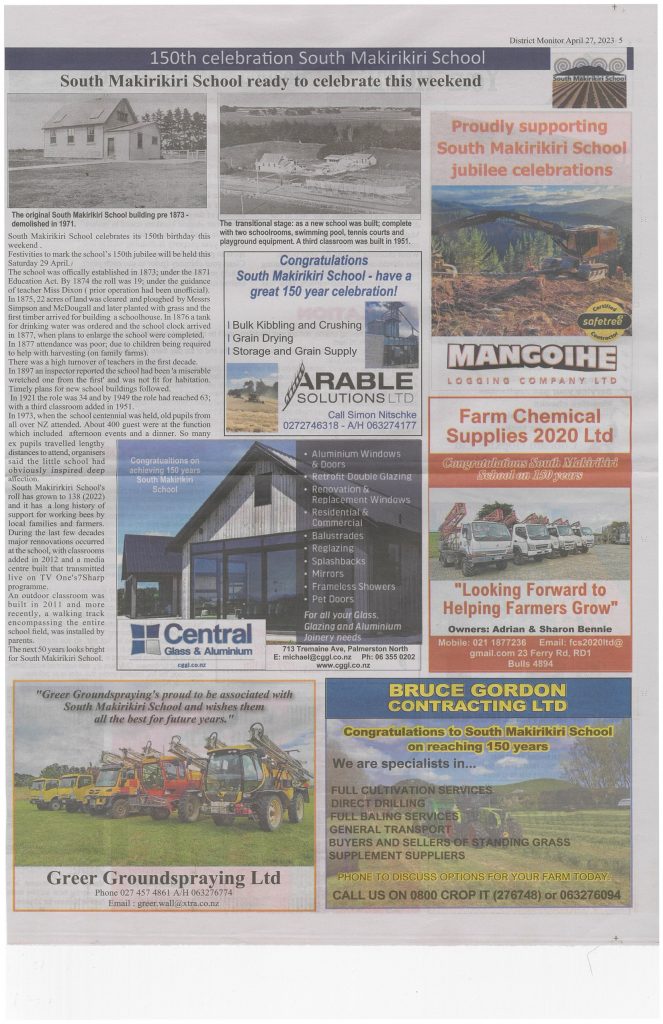 Local farmers cleared the land and started to work in the area. As they started to develop themselves a bit more, it was only a matter of time before the first building of the Private School South Mākirikiri School was born. Māori traditions from Ngati Apa were still evident in the archives as the tikanga and practices were still being used in the local area. Many of these descendants still farm the area and have children attending the school today.